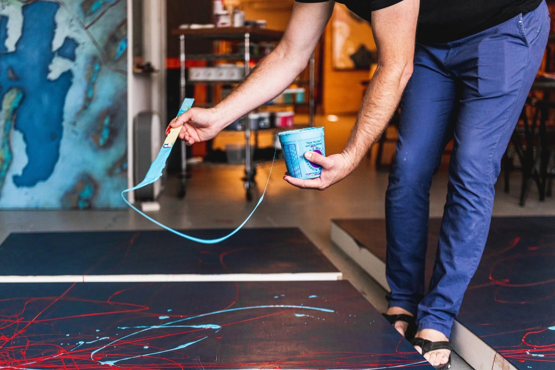 Combining the ‘Love of Place’ and the structure of landscape one could travel through, Abstract Topophilia™ was born. ben realized in painting from a birds-eye vantage point, it would force the viewer to connect to the piece on a personal level, and experience a personal odyssey through the piece.