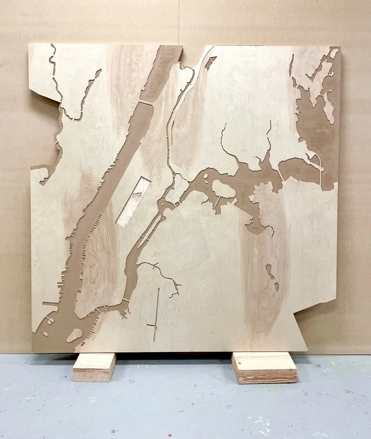Wooden cut-out of New York City