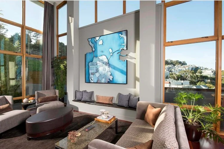 The collectors shared their love for the winter and spring in Montana. Infusing both seasons into the sculptural motion of the terrain created a stunning composition.